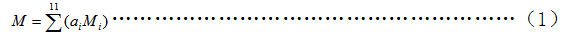 Mi——安全風(fēng)險(xiǎn)分級(jí)管控、事故隱患排查治理、通風(fēng)、地質(zhì)災(zāi)害防治與測(cè)量、采煤、掘進(jìn)、機(jī)電、運(yùn)輸、職業(yè)衛(wèi)生、安全培訓(xùn)和應(yīng)急管理、調(diào)度和地面設(shè)施等11個(gè)部分的安全生產(chǎn)標(biāo)準(zhǔn)化考核得分;